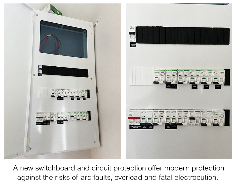 The answer was Arc Fault Detection RCBO – all-in-one devices combining arc fault detection with overload short circuit breakers and residual current protection. Including these in a new switchboard at the property took care of electrical compliance, was less expensive than full rewiring, and provided the new homeowners with peace of mind, while keeping their insurance company happy too.