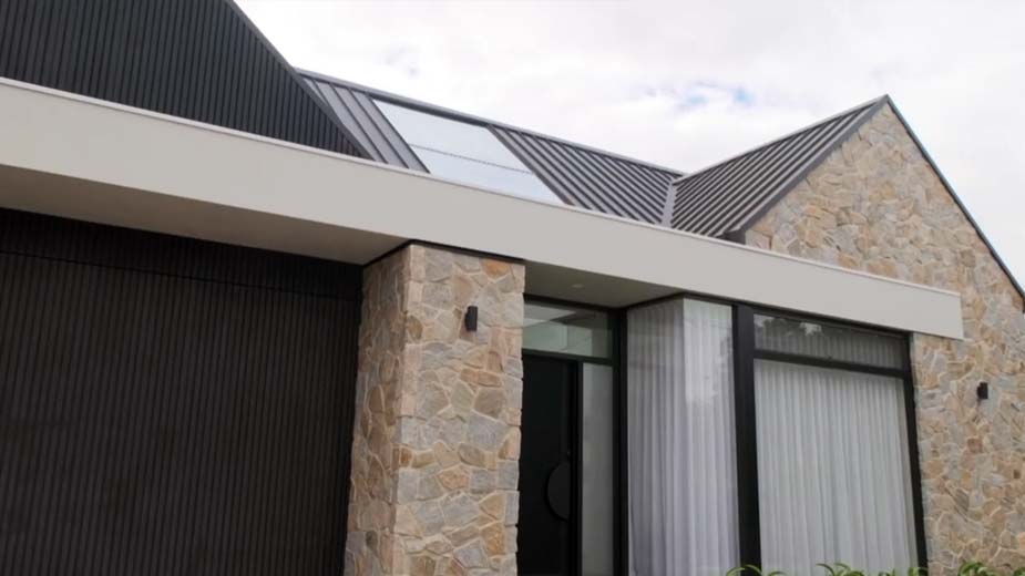 Scott Salisbury Construction built the four-bedroom home, which has a classic exterior featuring charred timber detail and pillars in hand-carved natural stone.