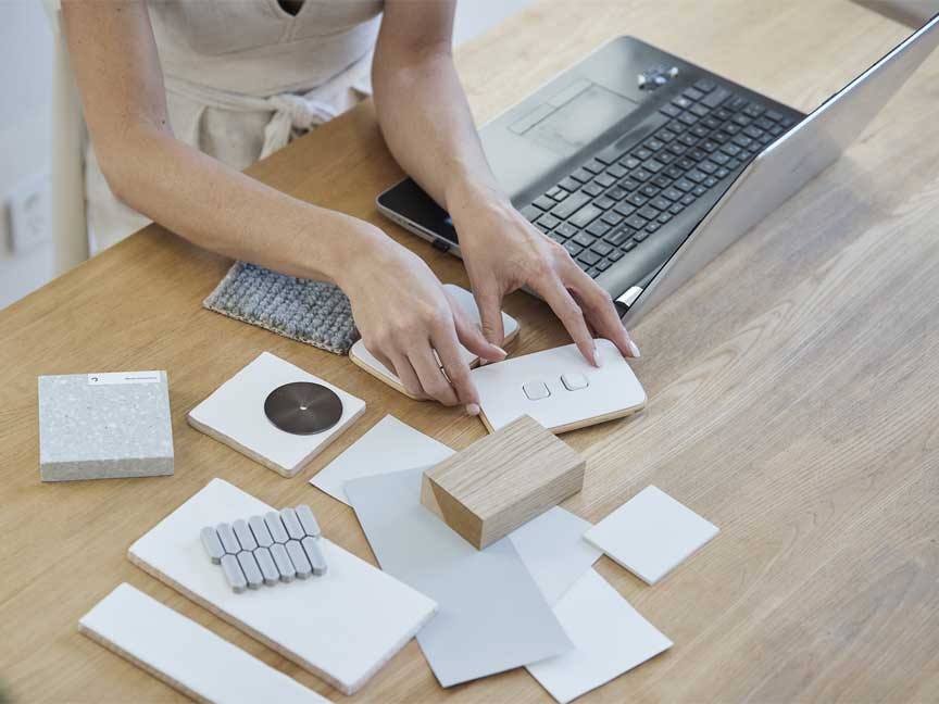 Try samples. Get as many colour, paint, and material samples as possible. If you want to pinpoint where to put new power points and switches, electrostatic reusable colour sample decals allow you to play with style and placement before committing.
