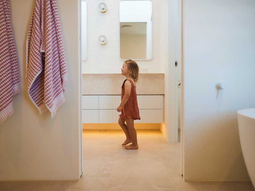Katherine also recommends smart touches such “LED strip lighting added to tiled niches in the shower. It’s such a minor detail but it really elevates the look of a bathroom.”