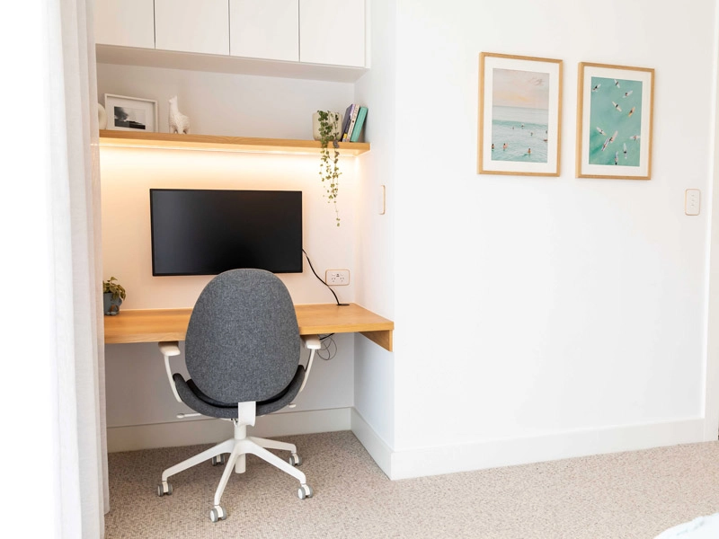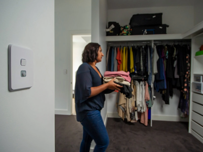 Remember, walk-in wardrobes are part of the bedroom layout too and can be enhanced by clever lighting, motion sensors and extra power points for charging and electrical accessories.