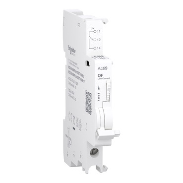 Acti9 Auxiliary contact OF, 1 C/O, 2mA to 100mA, 24VAC to 250VAC, 24VDC to 220VDC, bottom connection