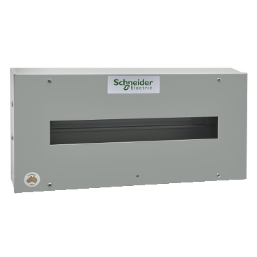 This Acti9 product is a surface mounted distribution load centre. 1 Din rail of 18 modules of 18mm is provided within the enclosure. It is made of steel and its color is grey.
