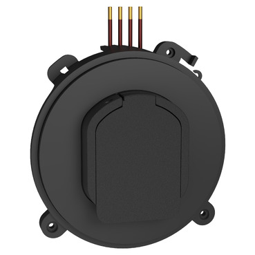 This EVlink Pro AC spare part is a T2 socket-outlet with shutter (T2S). It is used in three-phase. It is made of plastic. The IP degree of protection is IP55. The IK degree of protection is IK10. The operating temperature is between -30°C to 50°C. The storage temperature is between -40°C to 80°C. The dimensions are (W) 195mm x (H)235.5mm x (D) 110mm. The Us supply voltage is between 380VAC and 415VAC with a maximum supply current of 32A.