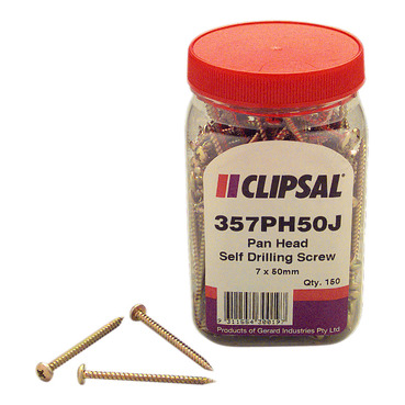 Clipsal - General Accessories Pan Head Self Drilling Point, 7 x 50mm, Jar 150