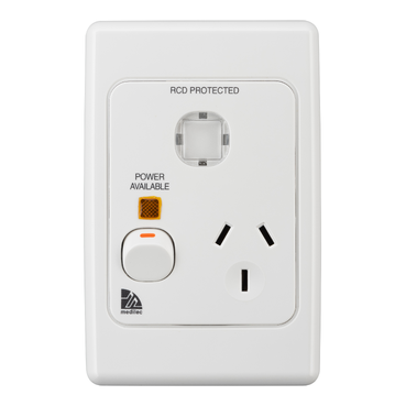 Medilec Single Switch Socket Outlet 250V, 10A, Vertical | White Electric