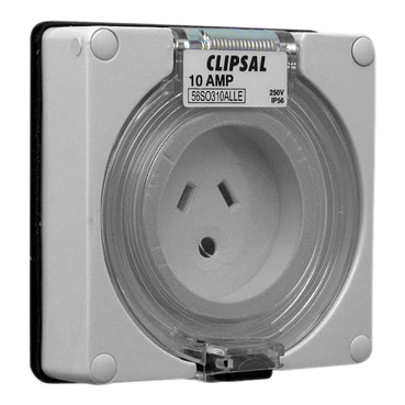 Clipsal - 56 Series Socket Outlet Surface Auto 10A LT Less Enclosure | Grey