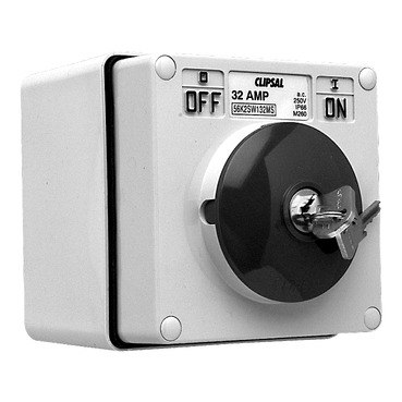 Clipsal - 56 Series Surface Switch 1 Pole, 250VAC, 32A, Key Operated, On/Off Locking Position | Grey