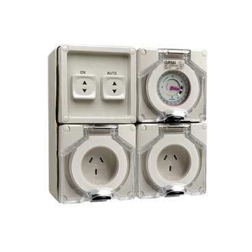 Clipsal - 56 Series Switched Socket Outlet 250V, 10A, 3 Flat PIN, IP66, Timer, Extra Socket | Grey
