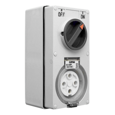 Clipsal - 56 Series Switched Socket Outlet 500V, 50A, 4 Round PIN, IP66, 3 Pole, Vertical | Grey