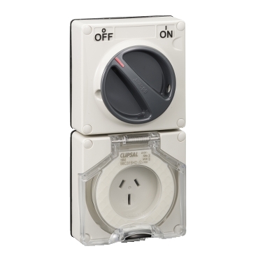 Clipsal - 56 Series Switched Socket Surface Switched Socket 3 PIN 15A Icom Less Enclosure | Grey