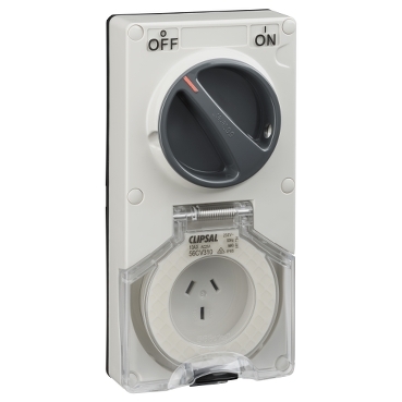 Clipsal - 56 Series Switched Socket Vertical IP66 3 PIN 10A Less Enclosure | Chemical Resistant Orange