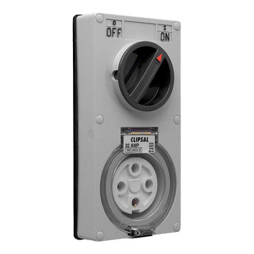 Clipsal - 56 Series Switched Socket Vertical IP66 4 PIN 32A Less Enclosure | Grey