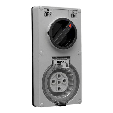 Clipsal - 56 Series Switched Socket Vertical IP66 5 PIN 20A Less Enclosure | Chemical Resistant Orange