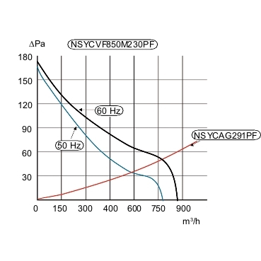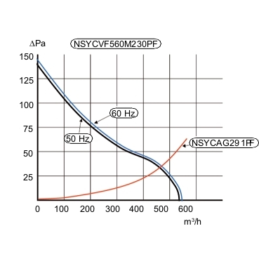 - free flow rate with standard filter: 803 m3/h at 60 Hz