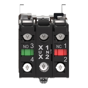 Harmony XB4 Complete body/contact assembly and light block metal, universal LED, body/fixing collar, 1NO + 1NC, 24V AC DC