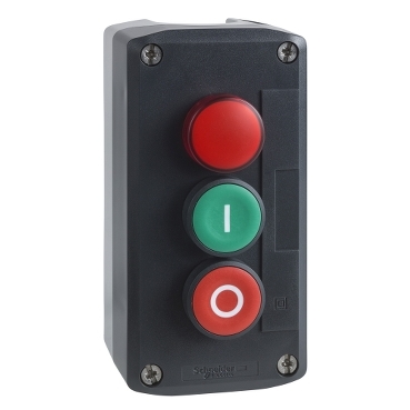 Harmony XALD XALK Control station plastic, dark grey, 1 red pilot light/1 green flush I/1 red flush O push-buttons, Ø22 , spring return