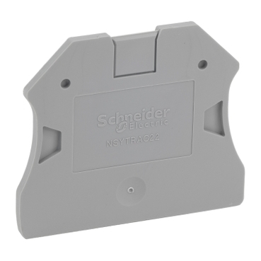 Linergy NSYTR cover plate for terminal block. It has grey surface treatment. For screw single-level terminal block 1x1, 2.5 to 10mm². It is compatible with TRV screw terminal. Sold in lots of 50 units.