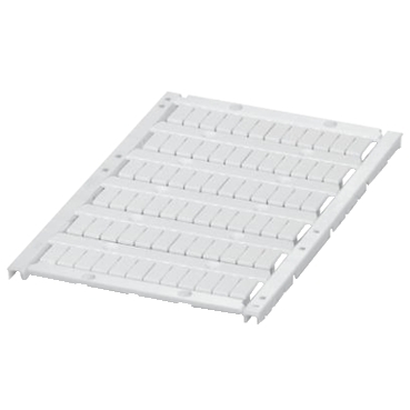 Linergy marking card for terminal block. It is compatible with terminal block. It has white surface treatment. It provides 6 strips, 5mm, Unprinted and 72 characters. Sold in lots of 10 units.