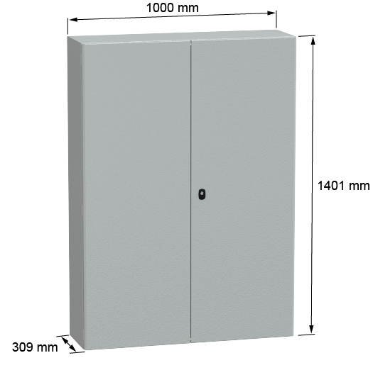 Spacial S3D Wall mounted steel enclosure double plain door, with mounting plate, 1400x1000x300mm, IP55, IK10