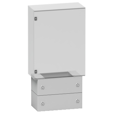Plinth to be used with Thalassa PLM enclosures The plinth is to be used in multi-purpose applications The width is 772mm The height is 200mm The depth is 352mm The kit is made of fixing elements, 2 front panels and 2 side parts The product is made of grey Material : Plastic (RAL 7035) Ingress protection rating is IP44 Mechanical protection rating is IK10
