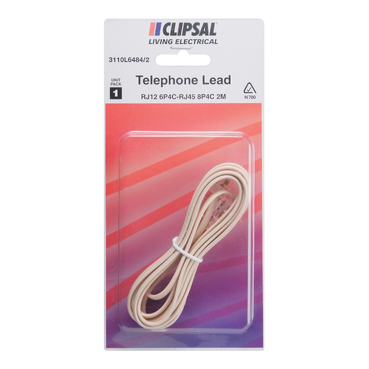 Clipsal Actassi Telephone Curly Cords and Extension Lead RJ11 6P4C to RJ45 8P4C, 2Metre