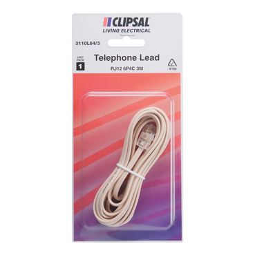 Clipsal Actassi Telephone Curly Cords and Extension Lead RJ11 / RJ12, RJ12, 6P4C, 3Metre