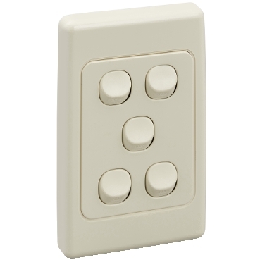When you need switching for five circuits, the Clipsal 2000 Series 5 Gang Vertical switch has you covered. The switch is designed to be installed vertically and it sits flush against the wall, offering functionality without intrusion into the rest of your decor.