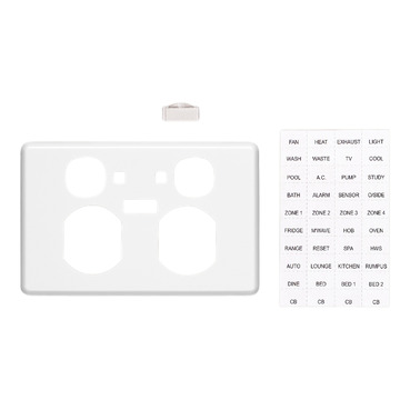 This Classic C2000 Twin Switched Socket Cover features a Circuit Identification Window, as well as cut-outs for neon indicator lights. The outlet cover comes with a printed sheet of common circuit names, and has a gloss finish and rounded corners, making it easy to keep clean.