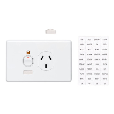 Socket outlet for horizontal installations. Single switched socket with circuit identification label and neon indicator. Clipsal C2000. Colour: White Electric Rated current: 10A. Operating voltage 250V a.c. 50Hz. Note: Requires installation by an appropriately licenced electrician.