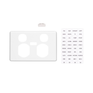 Socket outlet cover for horizontal installations. Twin switched socket cover with circuit identification label window. Clipsal C2000. Colour: White Electric