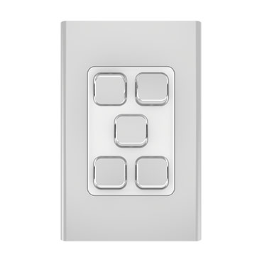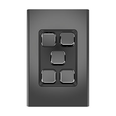 The Iconic Styl 5 gang Switch Skin can be vertically or horizontally mounted to its compatible Iconic standard Grid Plate. Once the Grid Plate is installed by an electrician, it's safe to change the skins, by simply clipping off the existing skin for a new Iconic skin design.