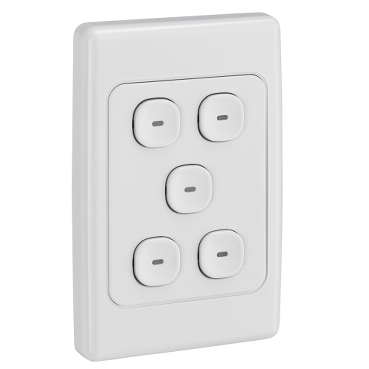 Impress Series push-button LED Switch 5 Gang Vertical Switch | White Electric