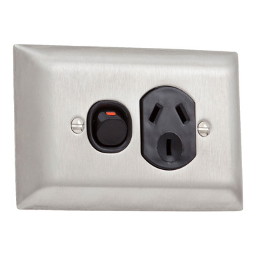Metal Plate Series Single Switch Socket Outlet 250V, 10A, A Style Deep Curved Plate | White Electric
