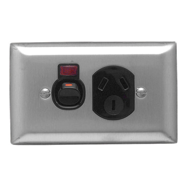 Metal Plate Series Single Switch Socket Outlet 250V, 10A, A Style Deep Curved Plate, Neon | Black