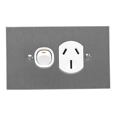 Metal Plate Series Switched Socket Single B Style Stainless Steel | White Electric