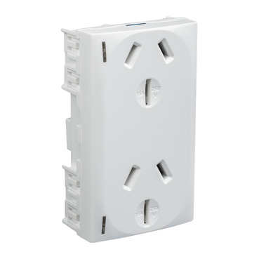 Modena/Strato Integral Twin Switch Socket Outlet 250VAC, 15A, Vertical, Blue LED | White Electric