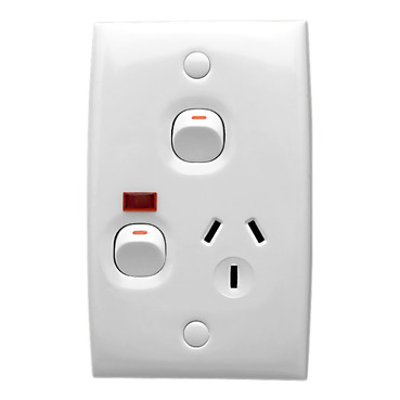 Modena/Strato Switched Socket Single, Vertical Mount with Extra Switch Neon | White Electric
