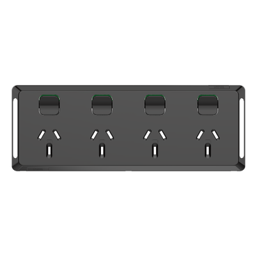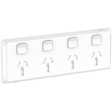 Robust and impact resistant for longevity in public places, the Pro Series Quad Switched Power Point Skin lets you accommodate four appliances in the one place. The skin has a gloss finish for easy cleaning and green indicators on the rockers to show when power is on.