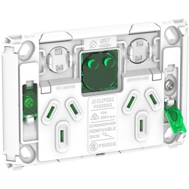 Featuring a glowing indicator pane, the Twin Horizontal Switched Power Point with Power Indicator Grid provides the extra confidence of knowing when the switch is activated. Rated 10A, 250V the grid has pre-mounted screws which can then be covered over to prevent access once installation is complete.