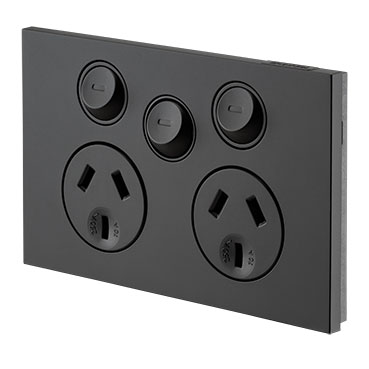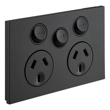 Saturn Zen Double Power Point With Extra Switch Horizontal Mount, 250V, 10A | Zen Black