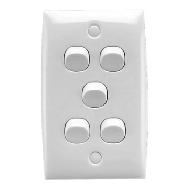 Standard Series Flush Switch 5 Gang, 250VAC, 10A, Standard, Vertical, PTN | Black