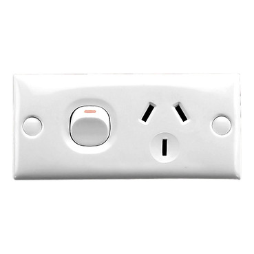 Standard Series Single Switch Socket Outlet 250V, 10A, Skirt Mount, Inline Termina | White Electric