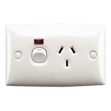 Standard Series Single Switch Socket Outlet 250V, 10A, Standard Size, Indicator | White Electric