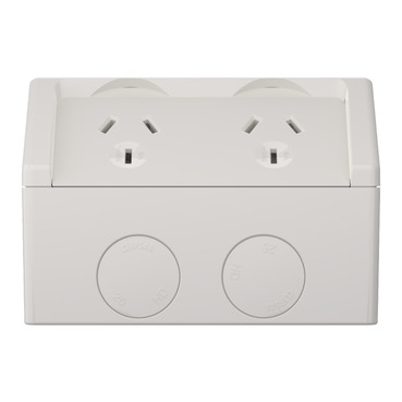 When you need space to plug in an appliances outside, the Clipsal Weathershield twin switched socket outlet has you covered. This socket outlet has two separate terminals so you can have each outlet on different circuits. Rated 10A, 250V, the range has an IP54 rating with protection against dust and water ingress. It is in a gloss finish to reduce the visibility of dirt.