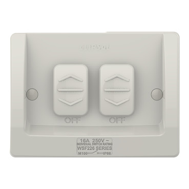 Weathershield Switch Flush, 2-Gang, 16AX, 250VAC, IP66 | Chemical Resistant Grey
