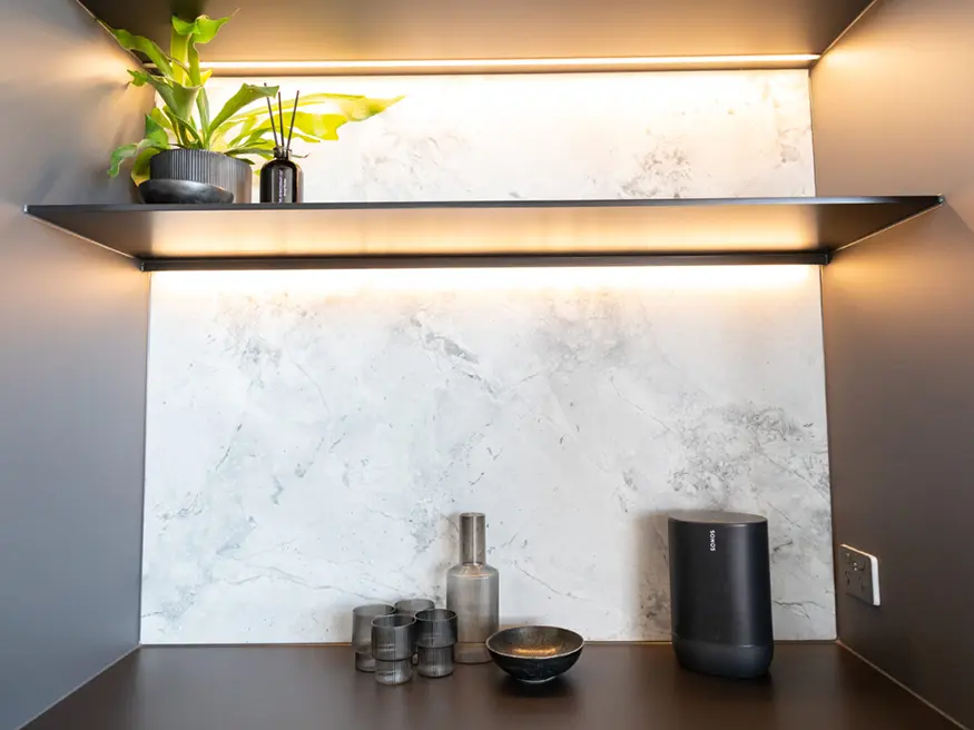 - Illuminate the space with warm, Clipsal smart lighting and natural elements until a welcoming atmosphere is achieved.