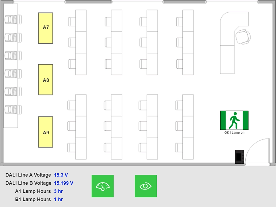 Program scenes, logic, and testing for emergency and exit lighting applications.